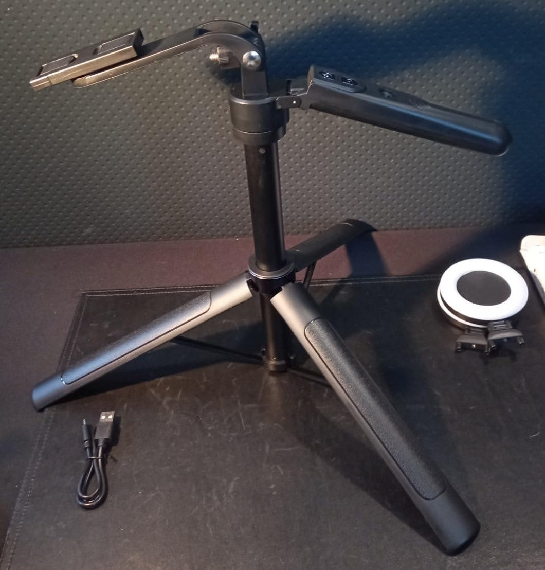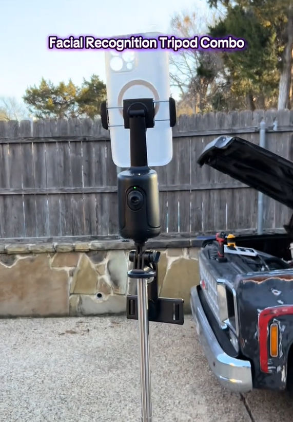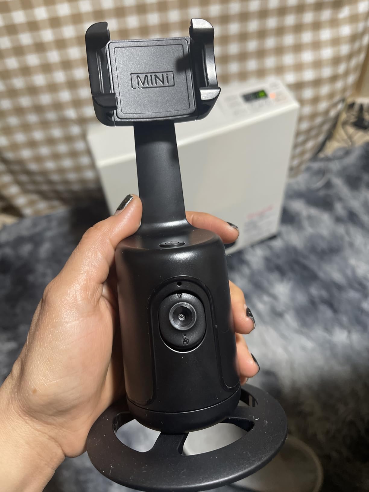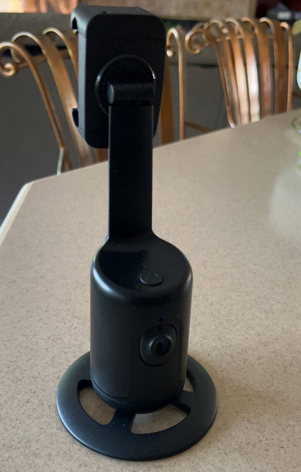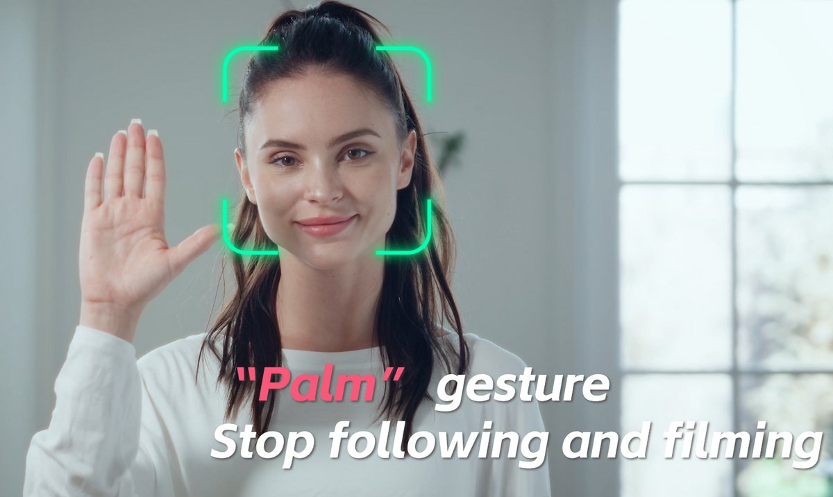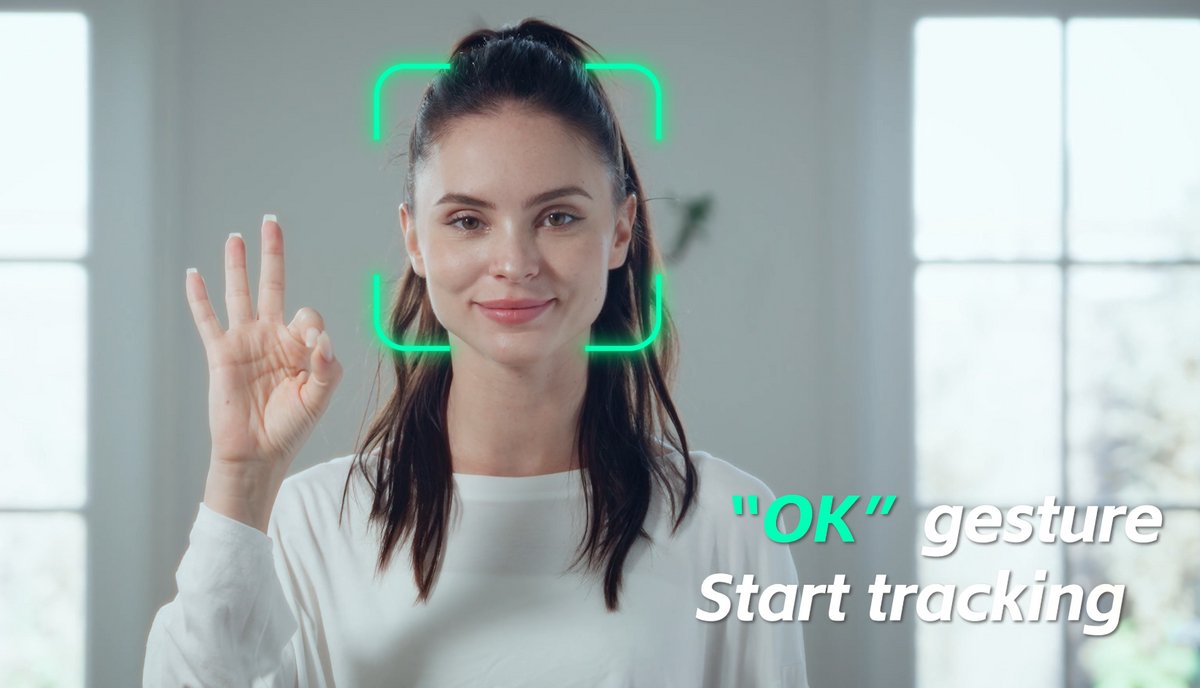 Press the button on your FaceTrack™ Tripod to turn it on. When the light turns green, it’s in tracking mode and follows your movements automatically. Hold up your palm to stop tracking and the light turns red, then make the "OK" gesture to start again and the light turns green.